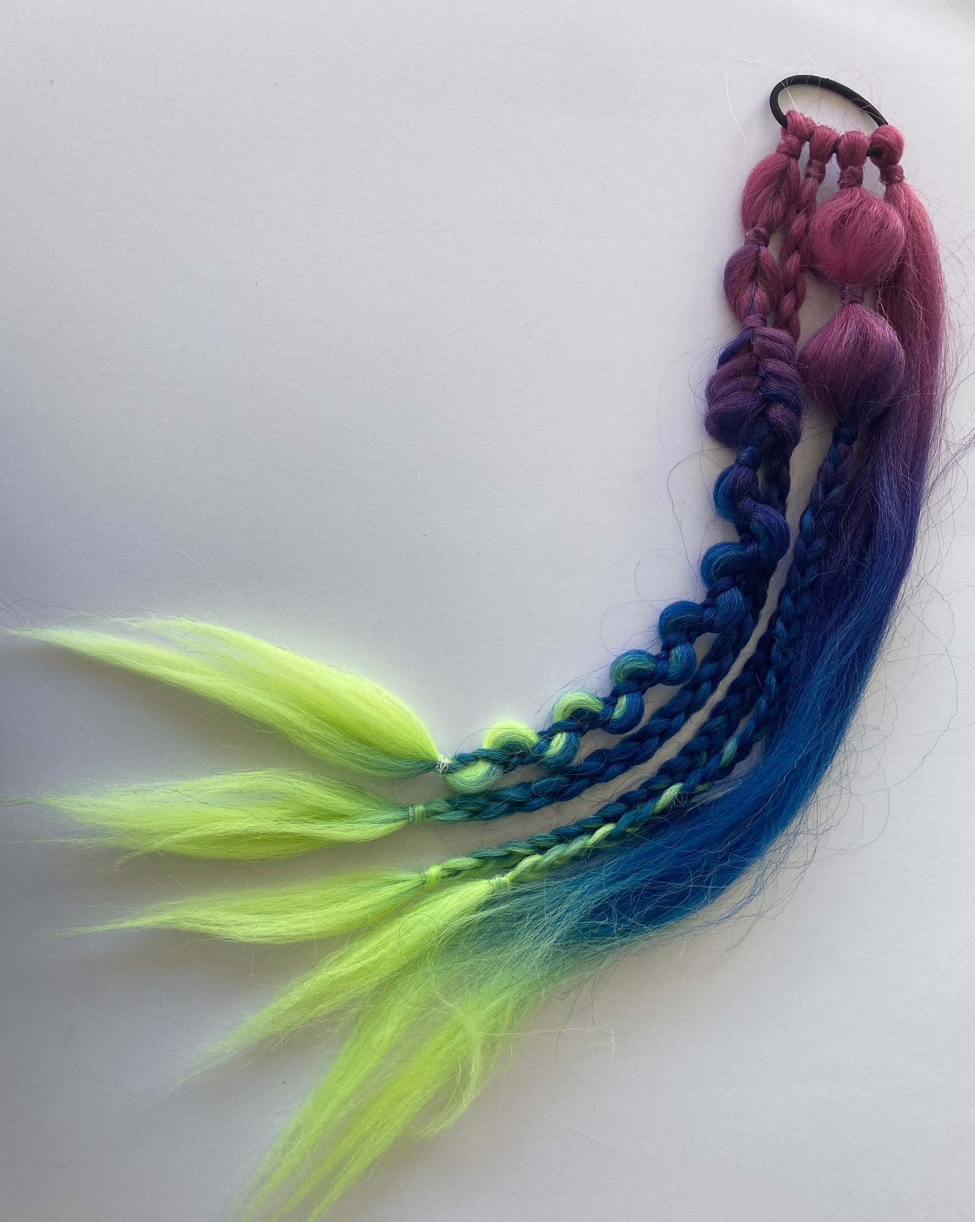 Gemma Pre-made Space bun Pigtail Bubble Braids, High Temperature Synthetic Fibre, Ombre vibrant colours, approx 50g weight and 26inches long. Saves time, Easy apply and removal, Re-useable with care.