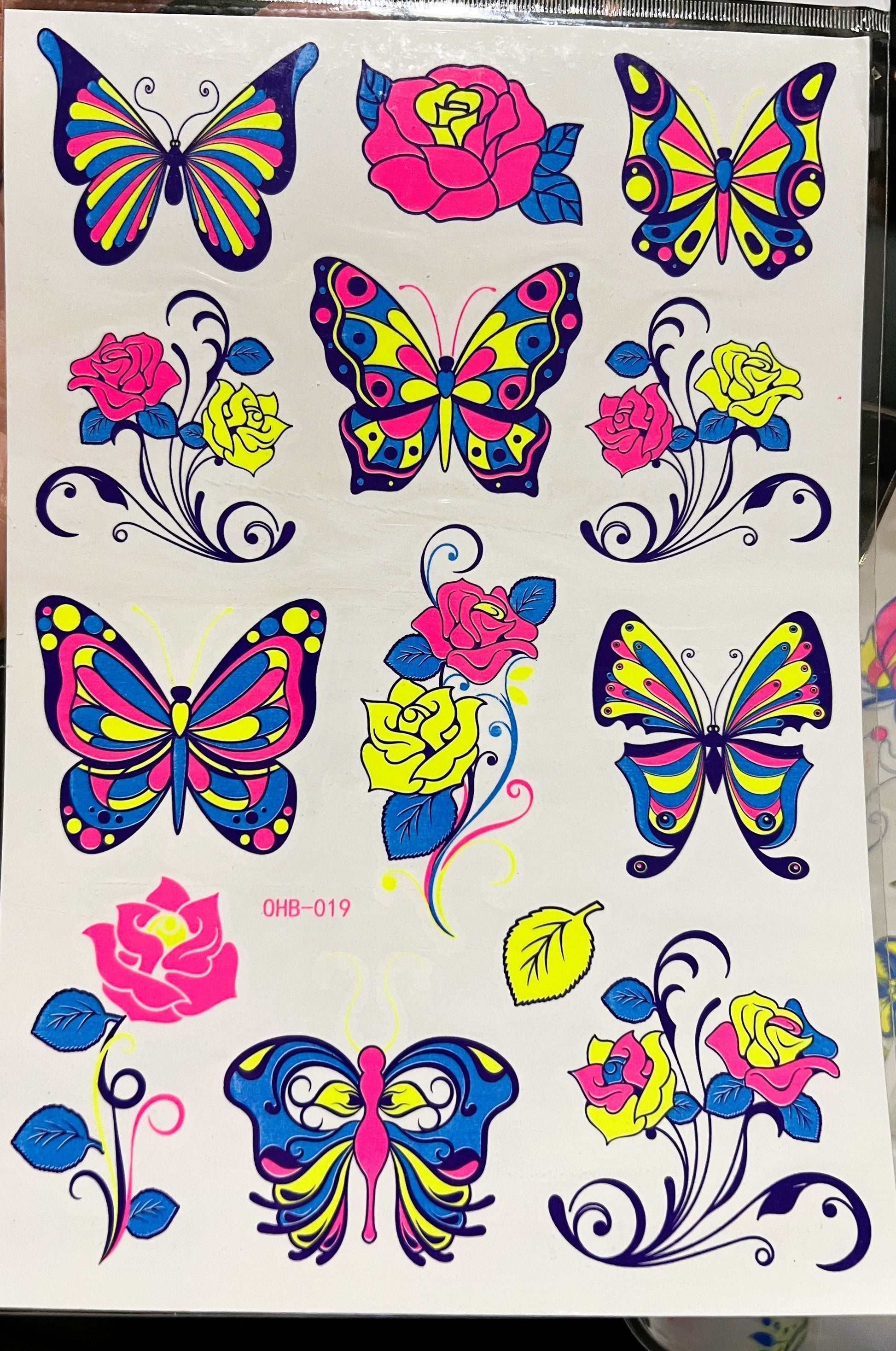 Butterfly Rosette UV Light Reflective Temporary Tattoo Sticker