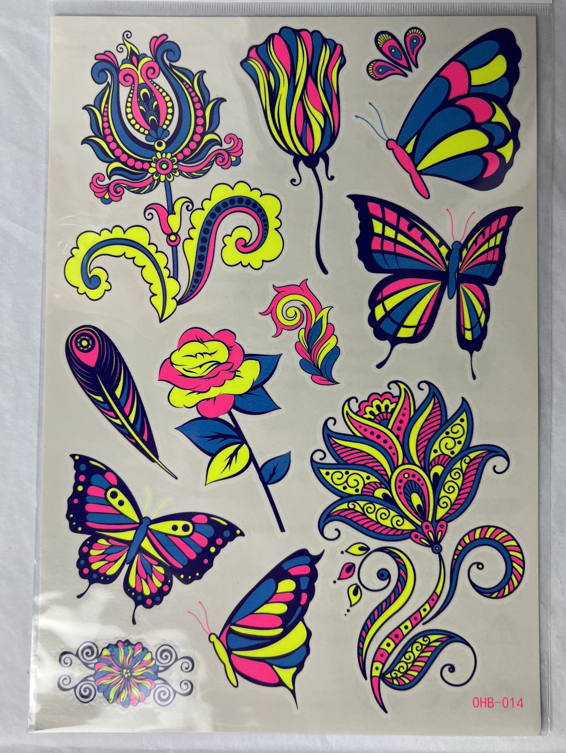 Floral and Fly UV Light Reflective Temporary Tattoo Sticker