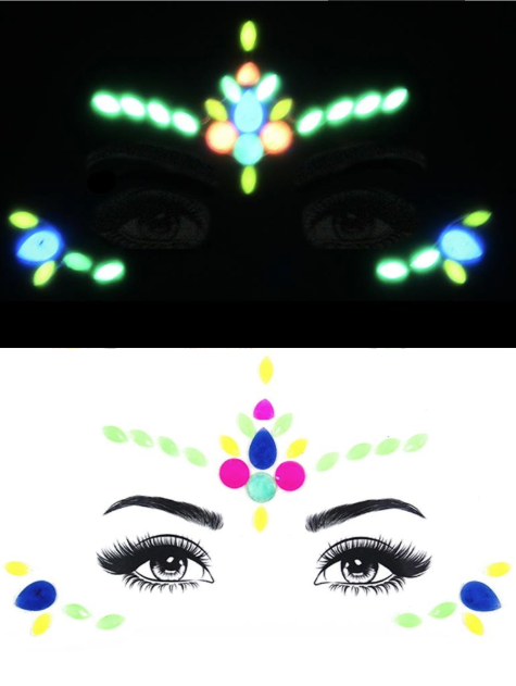 Illuminate your beauty with our Glow-in-the-dark Range. Our stunning, intricately designed 3D Face Rhinestone Jewels Sticker, provide captivating and versatile way to accentuate your style, adding a touch of glam to any occasion. Gentle on Skin, Long lasting, All in One, easy to Apply Adhesive. Easy to remove after event or occasion. Variety of styles available.