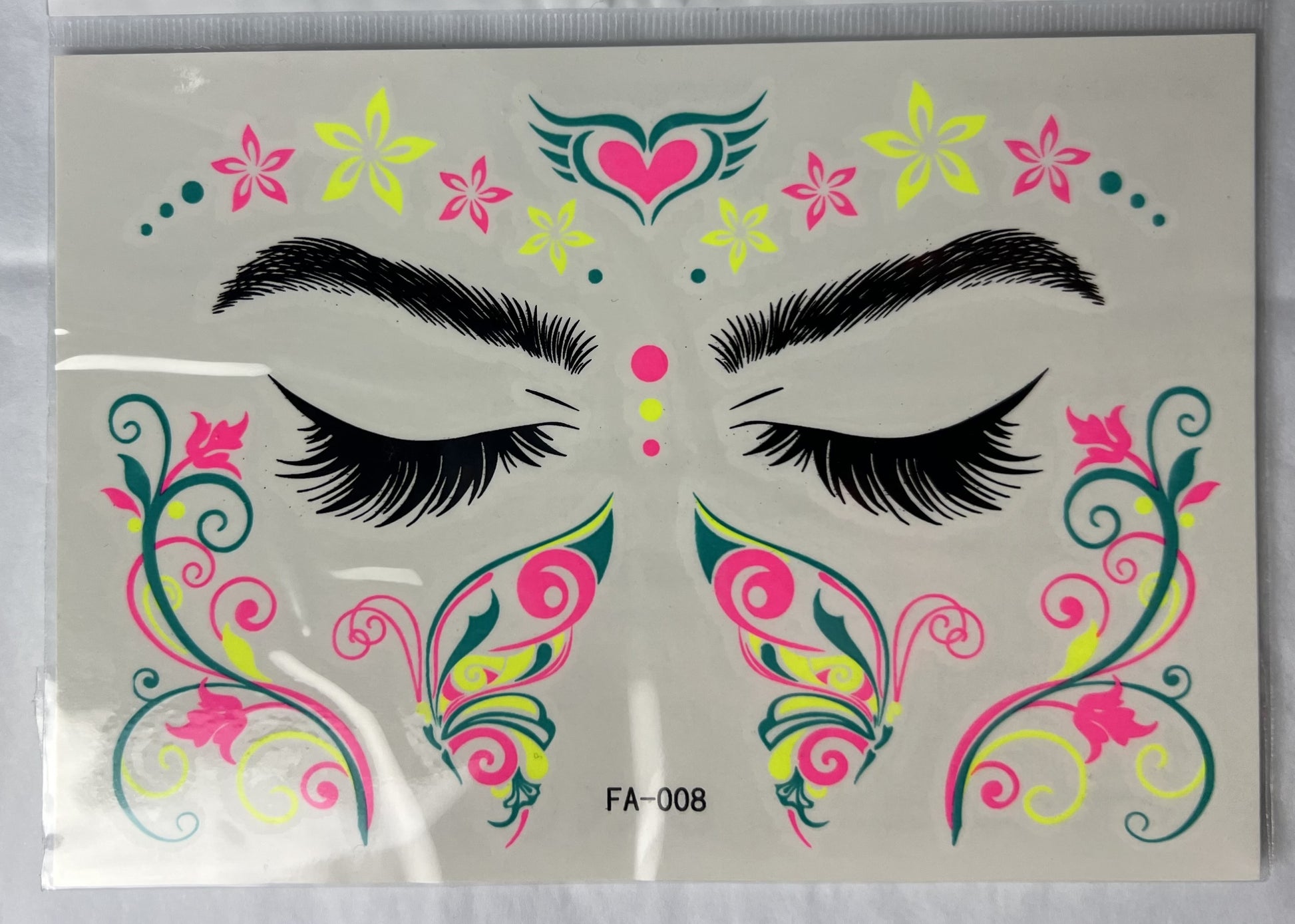 Illuminate your style with our UV light reflective temporary tattoo stickers. Perfect for parties, disco's, festivals and night events where blacklight is. These tattoos glow brilliantly under UV light, adding a striking and unique touch to your look! Gentle on Skin, Long lasting, easy to Apply instructions. Easy to remove after event or occasion using baby oil or rubbing alcohol. Variety of styles available.
