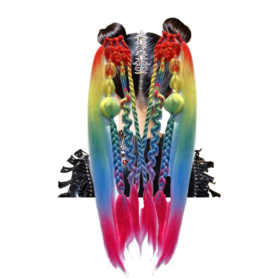 Maisy Pre-made Space bun Pigtail Bubble Braids, High Temperature Synthetic Fibre, Ombre vibrant colours, approx 50g weight and 26inches long. Saves time, Easy apply and removal, Re-useable with care.