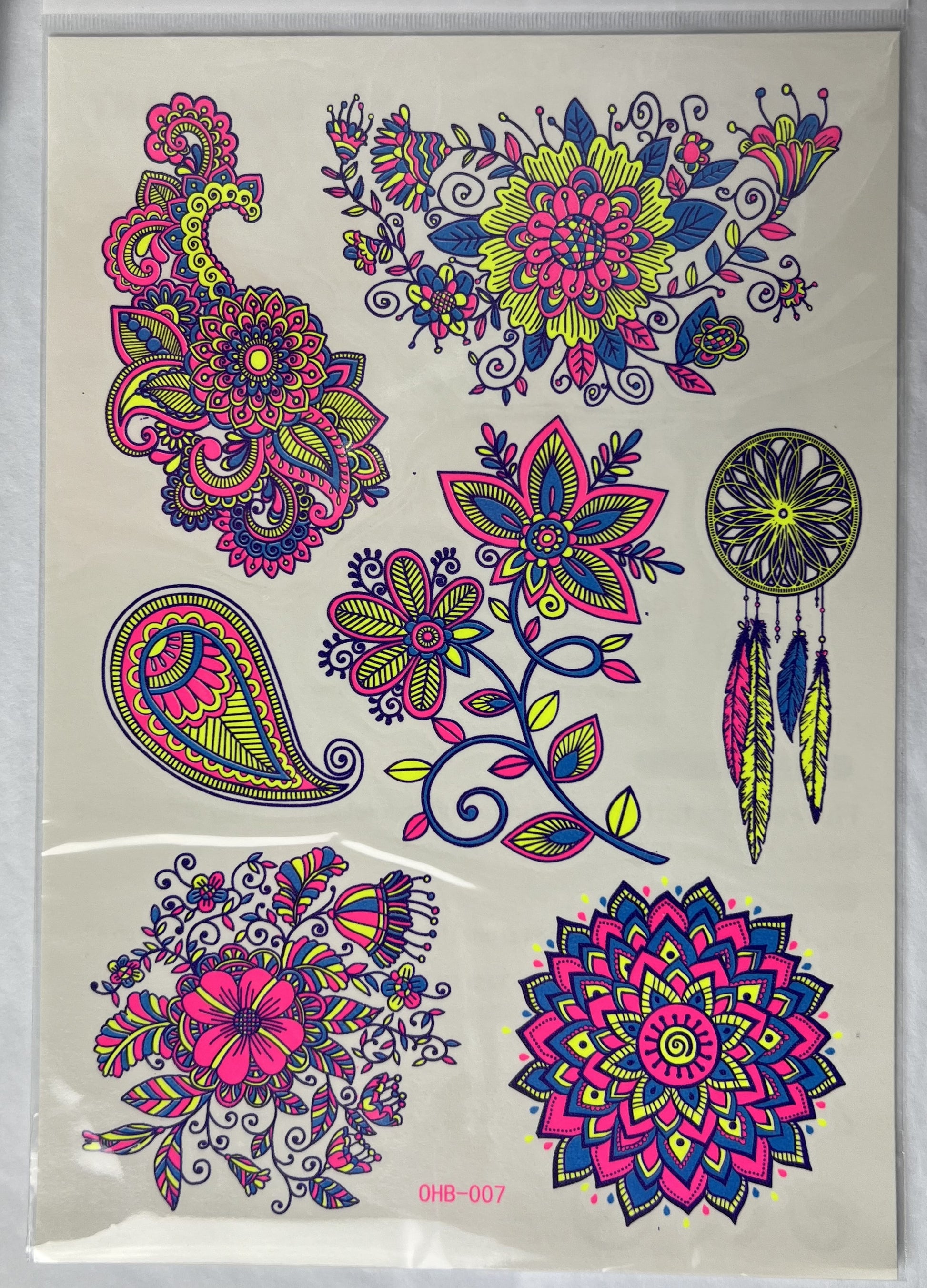 Illuminate your style with our UV light reflective temporary tattoo stickers. Perfect for parties, disco's, festivals and night events where blacklight is. These tattoos glow brilliantly under UV light, adding a striking and unique touch to your look! Gentle on Skin, Long lasting, easy to Apply instructions. Easy to remove after event or occasion using baby oil or rubbing alcohol. Variety of styles available.