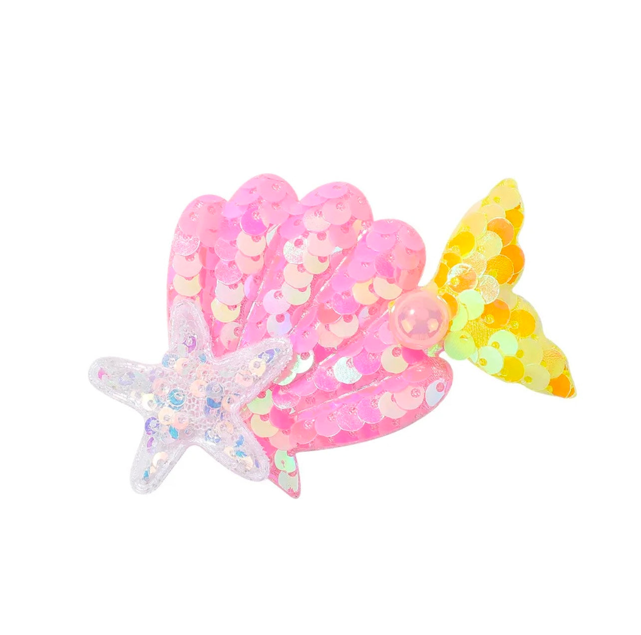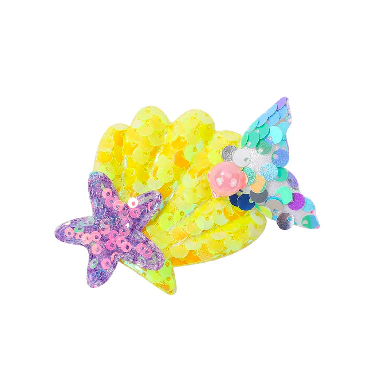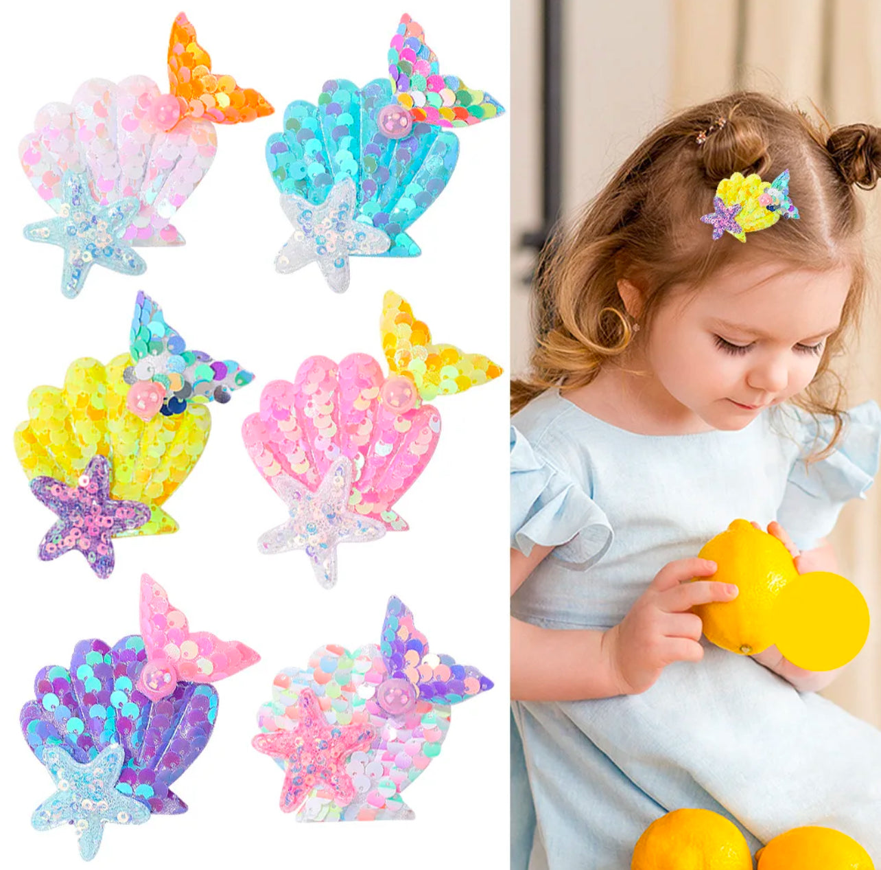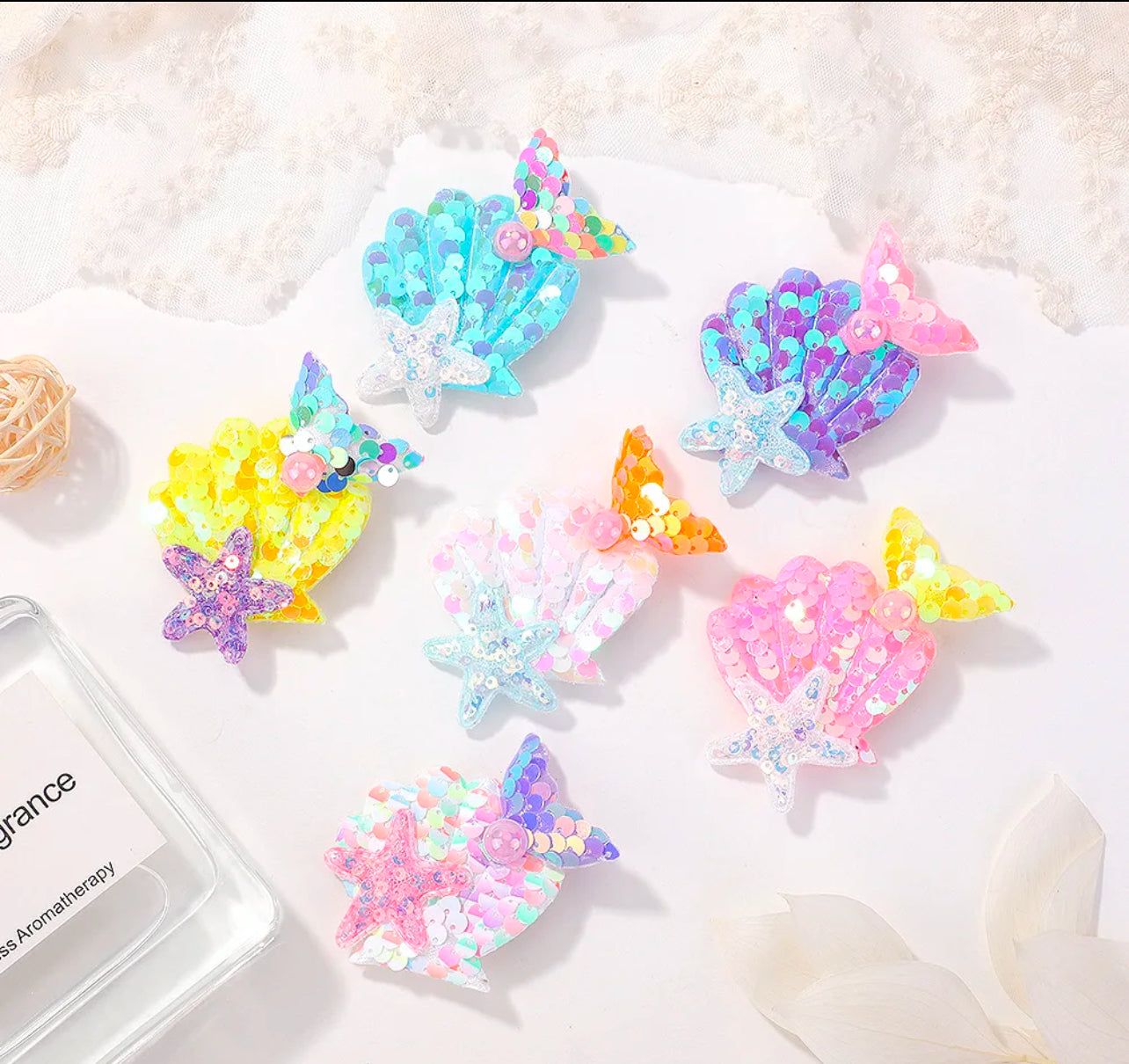 1pc, Sweet and Colourful Hair Clip, Star and Mermaid Tail and Shell Shiny Sequins Hair Clip, personalise your Tie-in Pre-made *Ponytail Bubble Braids with this stunning accessory